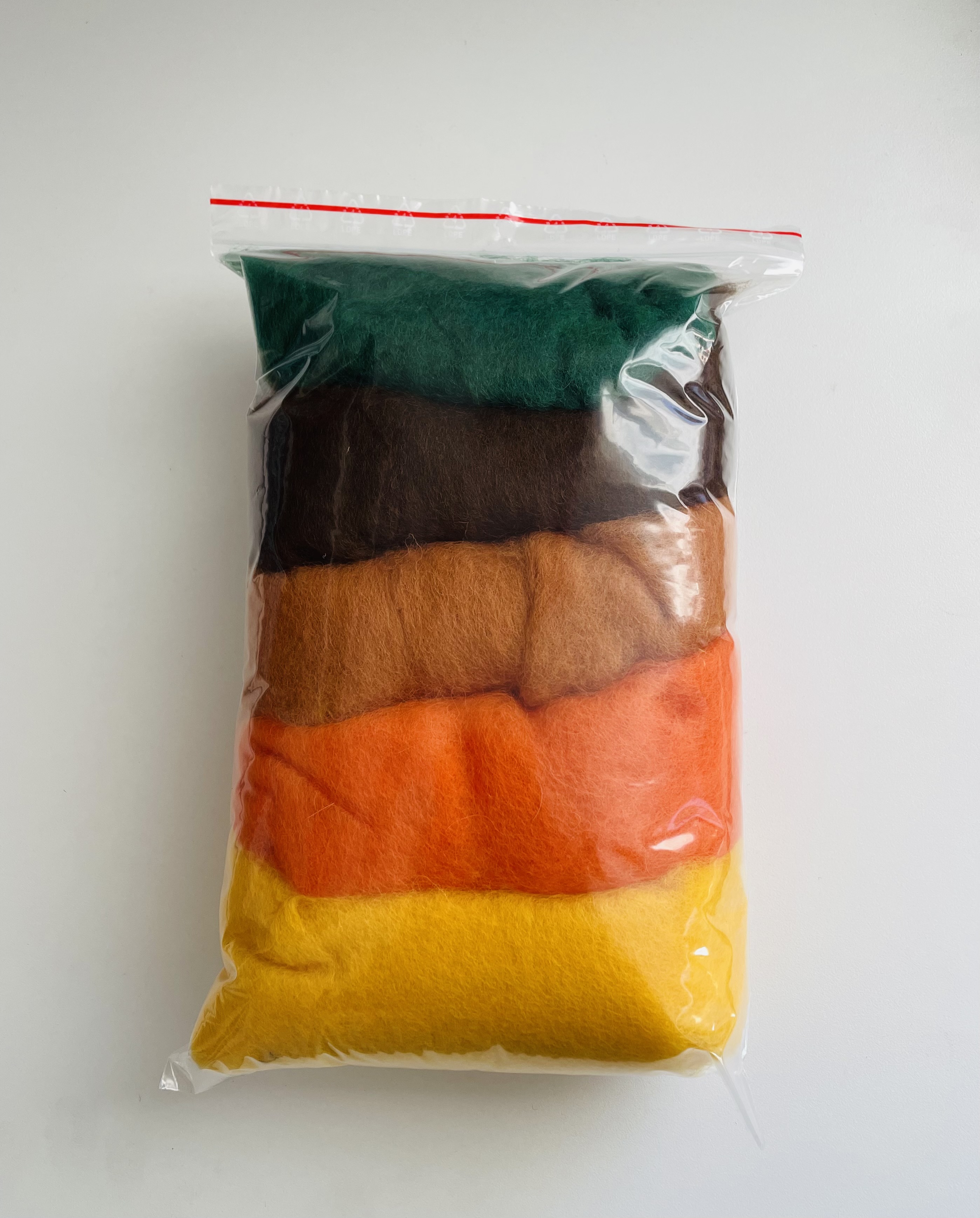 Úvod »SADY na plstenie » Kompletná sada MY 12 - 100 g, mykaná vlna, 3 ks ihly, podložka